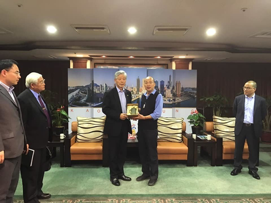 高雄市副市长叶匡时19日在脸谱网(facebook),贴出由春秋集团董事长王正华领队,拜访高雄市长韩国瑜,双方互赠纪念品的照片,王正华表示,希望两岸航空主管机关能早日协商予以支持。