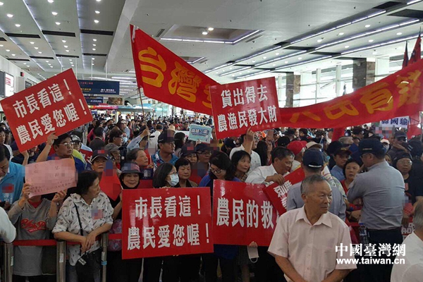 中国台湾网3月28日高雄讯 大批台湾高雄市民今天上午到机场迎接从大陆参访归来的市长韩国瑜。他们高举“货出得去 农渔民发大财”“市长看这 农民爱您”等标语,表达对韩国瑜的感恩之情。