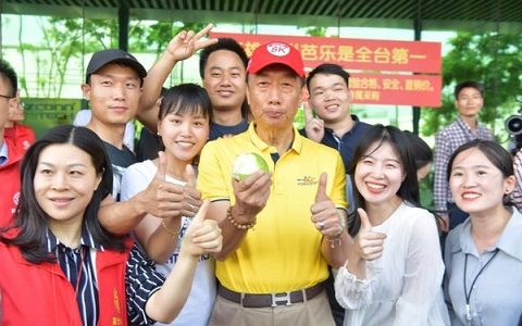 报道说,郭董承诺高雄市长韩国瑜推销农产,郭韩会隔天就下单6.5吨的燕巢番石榴,分10周送往大陆富士康分公司,19日他亲自到深圳卖番石榴,事后他扣除成本,22日将15万元盈余回馈农民,每人平均收到上万元的红包。