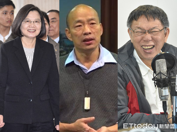蔡英文、韩国瑜、柯文哲。(图片来源:台湾“东森新闻云”)