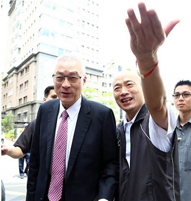 国民党主席吴敦义(左)、高雄市长韩国瑜(右)。(图片来源:台湾“中时电子报”)