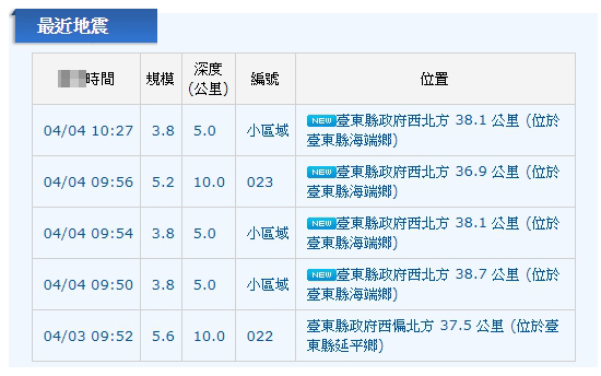 台东今晨发生四次地震都为昨日5.6级地震的余震。(图片取自台媒)