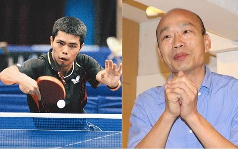 高雄四月代言人是庄智渊(图左者)!要跟韩国瑜尬桌球。(图片来自台媒)