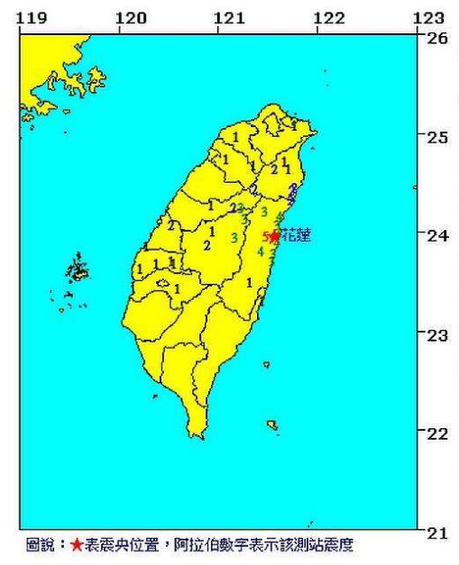 中国台湾网4月10日讯 据台湾“中时电子报”报道,继昨晚(9日)11:13花莲吉安发生5.0级强震后,今日凌晨4:24花莲地区附近再度发生有感地震,最大震度为花莲县铜门乡的5级。