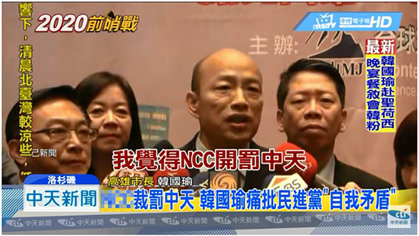 "NCC"再罚中天100万 韩国瑜批绿营拿到权力自我打脸