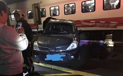报道说,驾驶柯姓男子15日晚间10时开车行经明灯路平交道时,疑似车辆故障无法动弹,遭到随后行驶过的普悠玛228次列车(树林往志学)拦腰撞上,车尾被削去大半,驾驶颈部受伤并送医急救。