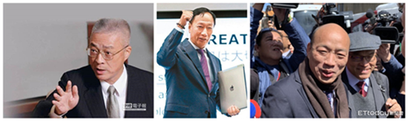 吴敦义(左)、 郭台铭(中)、韩国瑜(右)(图片取自台媒)