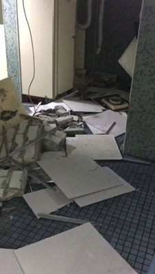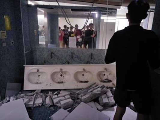 台湾师范大学校舍发生磁砖掉落,男生宿舍洗手台被震垮等情况(图片来源:台湾“联合新闻网”)