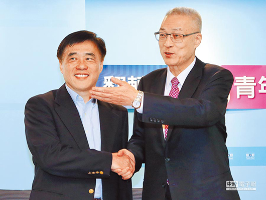 国民党副主席郝龙斌(左)说,初选名单一定会有韩国瑜。右为国民党主席吴敦义。(图片来源:台湾“中时电子报”)