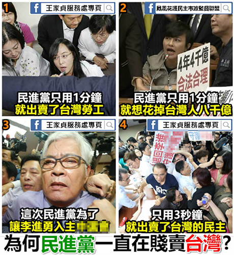 中国台湾网4月25日讯 据台湾“中时电子报”报道,台“立法院内政委员会”昨日(24日)审查台当局“中选会主委”李进勇人事案,由于会议一团混乱无法顺利进行,民进党召委张宏陆裁示并表决后,会议即结束。人事案的通过被国民党团痛批是“三秒勇”。对此,脸谱网(facebook)网友又提及“一分莹”、前瞻计划1分钟初审等事,痛批民进党“为何一直在贱卖台湾?”