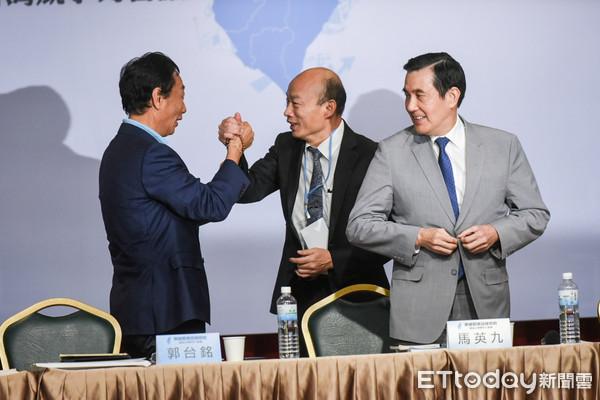 30日下午马英九召集的论坛活动中,郭台铭韩国瑜互动良好。(图片来源:台湾“东森新闻云”)