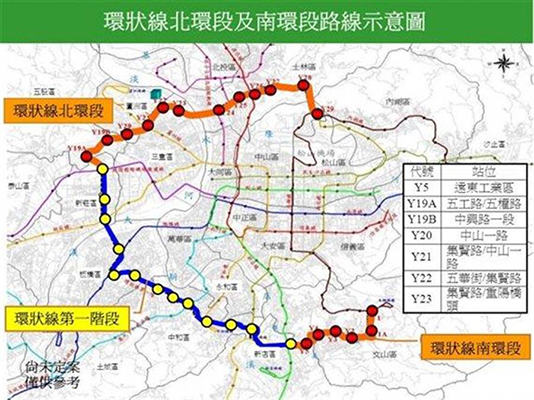 台北捷运环状线第二阶段:北环段及南环段。(图片取自台媒)