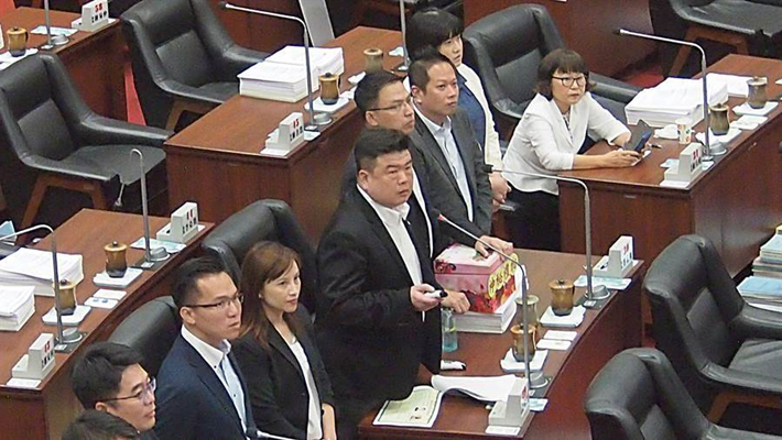 民进党高市议员简焕宗6日质询时泪洒议场,指控韩粉扬言对其孩子不利(图片来源:台湾“中时电子报”)