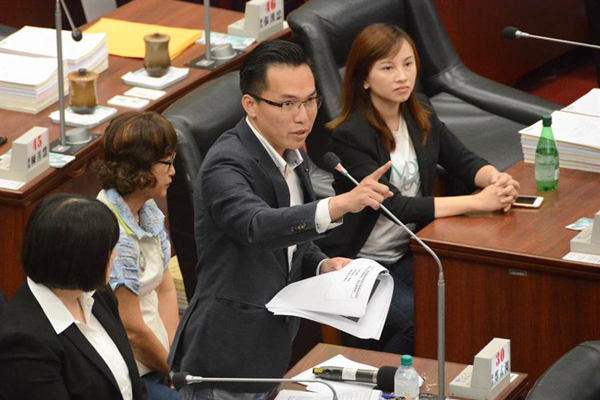 民进党高雄市议员林智鸿火力全开质询高雄市长韩国瑜。(图片来源:台湾“中时电子报”)