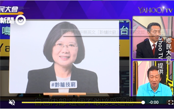 台湾鸿海集团董事长郭台铭,参与的台湾“YAHOO乡民大会”节目录影,今日(15日)播出(图片来源:台湾“东森新闻云”)
