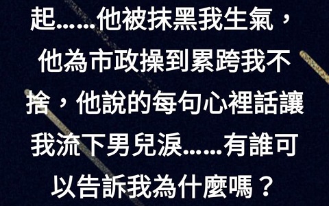 有网友在脸书“韩国瑜铁粉后援会”发文:“我是退伍的职业军人也是高雄市民,在军职生涯中除了为父母、老婆、孩子掉泪操心难过外,唯有经国先生让我哀思泪流。但曾几何时,韩国瑜市长居然让我心情起伏迭起……他被抹黑我生气,他为市政操到累垮我不舍,他说的每句心里话让我流下男儿泪……有谁可以告诉我为什么吗?”