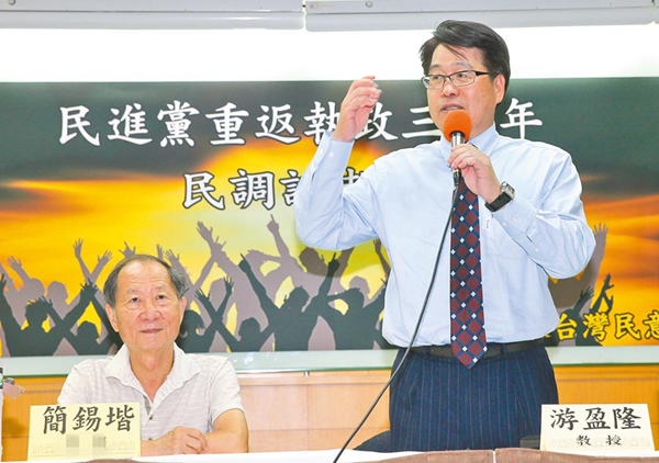 “台湾民意基金会”昨天在台大校友会馆召开“民进党重返执政三周年”,五月全台性民调发表会,由基金会董事长游盈隆主持并主讲,邀请学者专家与谈。