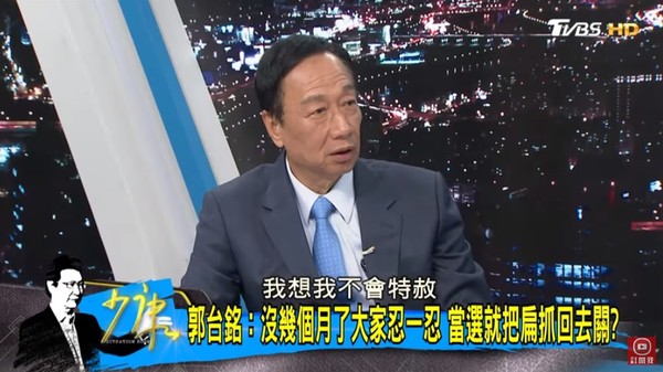 郭台铭表明不会“特赦”陈水扁。(图片来源:台湾“东森新闻云”)