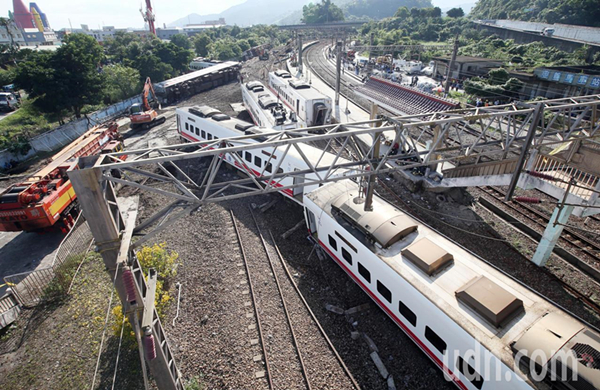 台铁普悠玛列车去年10月高速行驶撞击新马车站月台后出轨造成严重伤亡。(图片来源:台湾《联合报》)