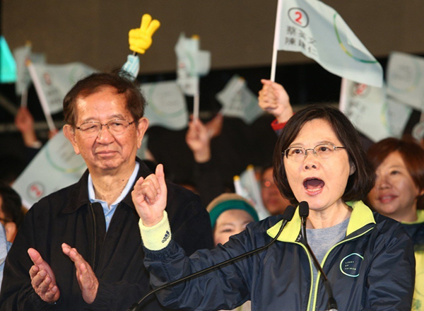 2016年大选最后关键时刻,李远哲(左)为蔡英文助选。(图片来源:台湾《联合报》)