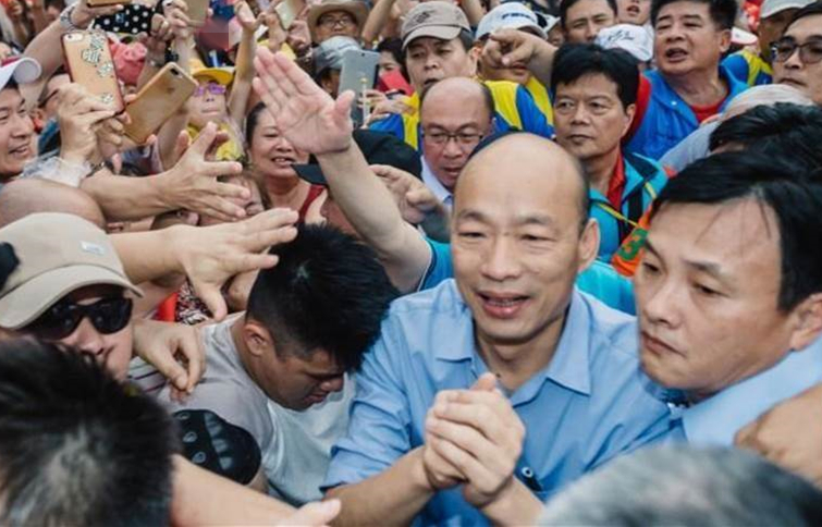 韩国瑜1日出席凯道挺韩大会师,现场涌入数十万人,因热情的韩粉簇拥,让韩进场就走了10多分钟。(图片来源;台湾“中时电子报”)