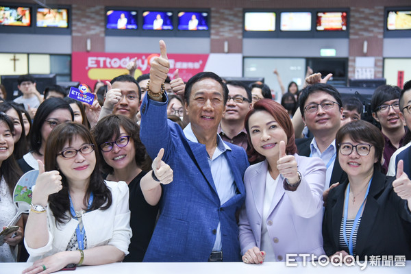 台湾鸿海集团董事长郭台铭(中)(图片来源:台湾“东森新闻云”)