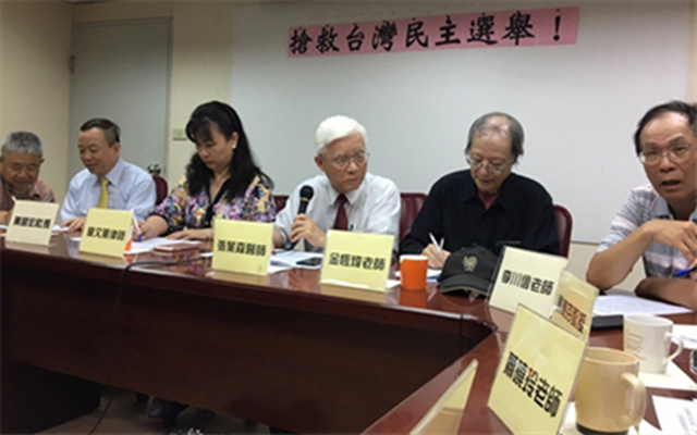 多个“本地社团”领袖组成的“民进党初选观察团”今(5日)早举行“抢救台湾民主选举”记者会(图片来源:台湾《联合报》)