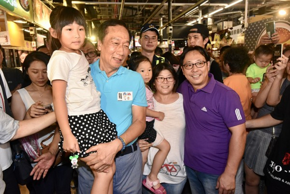 中国台湾网6月9日讯 据台湾“东森新闻云”报道,台湾鸿海集团董事长郭台铭,为参加国民党2020初选争取民众支持,8日继续北台湾夜市行程,拜访新店区安和国际夜市并发放福袋,受到摊商和当地民众的热情接待。民众扶老携幼前来合影,郭台铭来者不拒通通将小孩一把抱起展现亲民作风。亲切的郭台铭点了200元(新台币)平民小吃,并率领民众向蔡当局呛声高喊“人民不能再忍耐另一个4年了”!