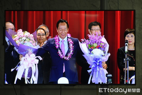 郭台铭(中)正式卸任鸿海董事长。(图片来源:台湾“东森新闻云”)
