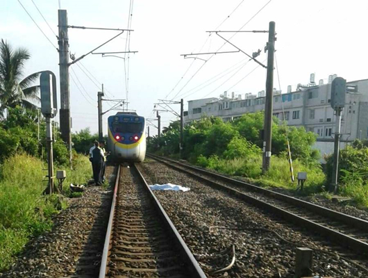 一列由台南市开往嘉义县的3116次通勤区间电车,突然撞上一名穿越栅栏的路人,造成该民众当场死亡。(图片来源:台湾“中时电子报”)