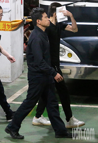 台当局“国安局”少校吴宗宪(前)利用蔡英文“出访”,走私免税烟品共9800条,台北地检署复讯后,申请羁押禁见获准。(图片来源:台湾《联合报》)