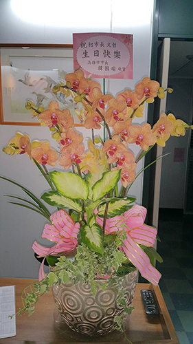 高雄市长韩国瑜请幕僚送花祝台北市长柯文哲生日快乐,其中有贺“台湾民众党”诞生之意。(图片取自台媒)