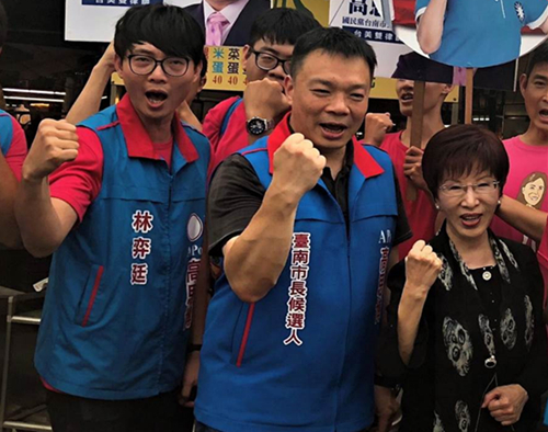 国民党前主席洪秀柱(右一)表达愿意南征台南艰困选区,去年代表国民党参选台南市长的高思博(中)表达全力支持。(图片来源:台湾“中时电子报”)