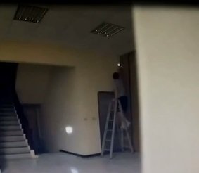 副所长拿梯子移动监视器镜头。(图片取自台媒)