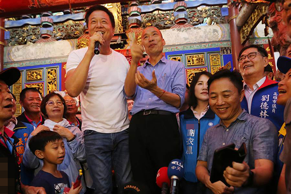 韩国瑜到彰化进行寺庙之旅,1日傍晚来到二林镇仁和宫参拜。(图片来源:台湾“中时电子报”)