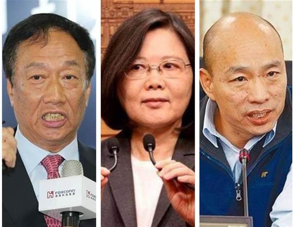 左起郭台铭、蔡英文和韩国瑜。(图片来源:台湾“中时电子报”)