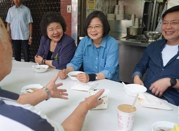 蔡英文直攻对手韩国瑜所在的高雄市,由陈菊陪同抢选票,还吃了红豆牛奶冰。(图片来源:台湾“中时电子报”)