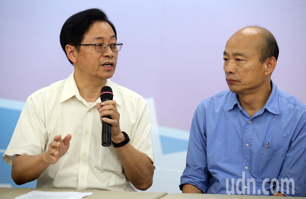 韩国瑜“国政顾问团总召”张善政(左)、国民党2020参选人韩国瑜(右)(图片来源:台湾《联合报》)