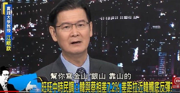 江岷钦在政论节目《少康战情室》表示,韩国瑜与蔡英文的民调已进入“剪刀脚”局势,是有机会的,关键就在“震荡加剧,赢在修正”。韩虽目前看起来有“政策顾问团”跟很多辅选成员,但基本上主轴还是韩一个人,变成整个选举都是以“一个人的武林”为主。纵然韩已有些修正,但仍不脱过去选党主席和市长的主轴。