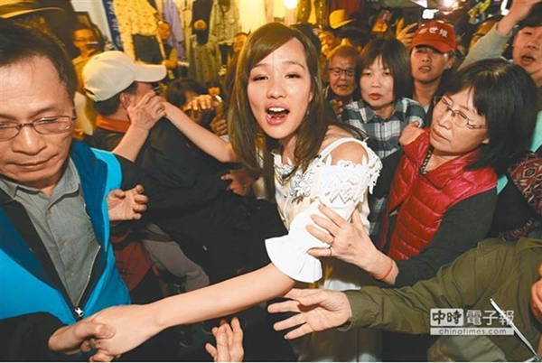 韩国瑜女儿韩冰人气高,所到之处总是能引起轰动。(图片来源:台湾“中时电子报”)