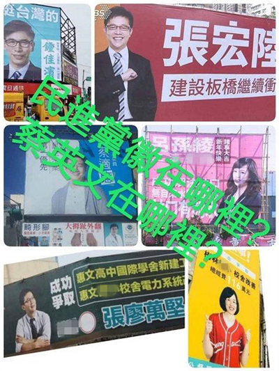 民进党候选人竞选广告牌上线 网友疑惑:怎么通通缺一色?
