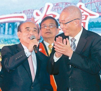 王金平(左)昨晚力挺吴敦义(右)列不分区“立委”,表示“在安全名单里面,不用在第一名”。(图片来源:台湾《联合报》)