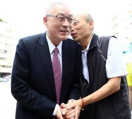 中国国民党主席吴敦义、2020年台湾地区领导人选举国民党参选人韩国瑜。(图片来源:台湾“中时电子报”资料图)