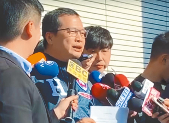 罗智强在台湾“三立电视台”门口质问蔡英文。(图片取自台媒)