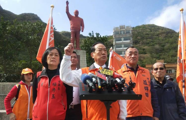 宋楚瑜在蒋经国铜像前痛批马英九、蔡英文以及国民党、民进党。(图片来源:台湾“联合新闻网”)