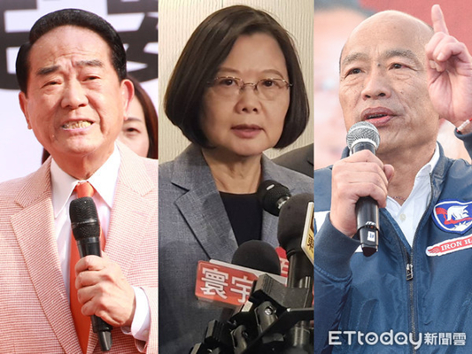 亲民党2020候选人宋楚瑜、民进党2020候选人蔡英文、国民党2020候选人韩国瑜。(图片来源:台湾“东森新闻云”)