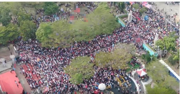 韩国瑜周末台南大造势,空拍影片曝光,现场满满的人潮。(图片取自台媒)
