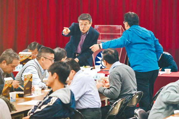 国民党22日举行年终感谢便当餐会,代理主席林荣德(后中)也一同出席。(图片来源:台湾“中时电子报”)