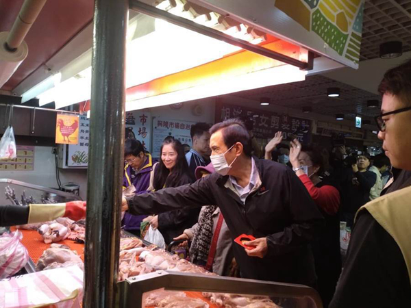 马英九到住家附近的兴隆市场发春联。(图片来源:台湾“中时电子报”)
