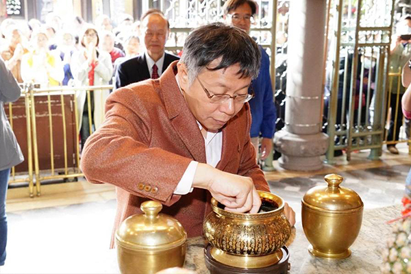中国台湾网1月25日讯 据台湾“中时电子报”报道,大年初一,台湾地区领导人蔡英文在台北市大同区觉修宫、保安宫发放新春红包。同样,台湾民众党主席柯文哲也一大早便开始拜庙、发红包。